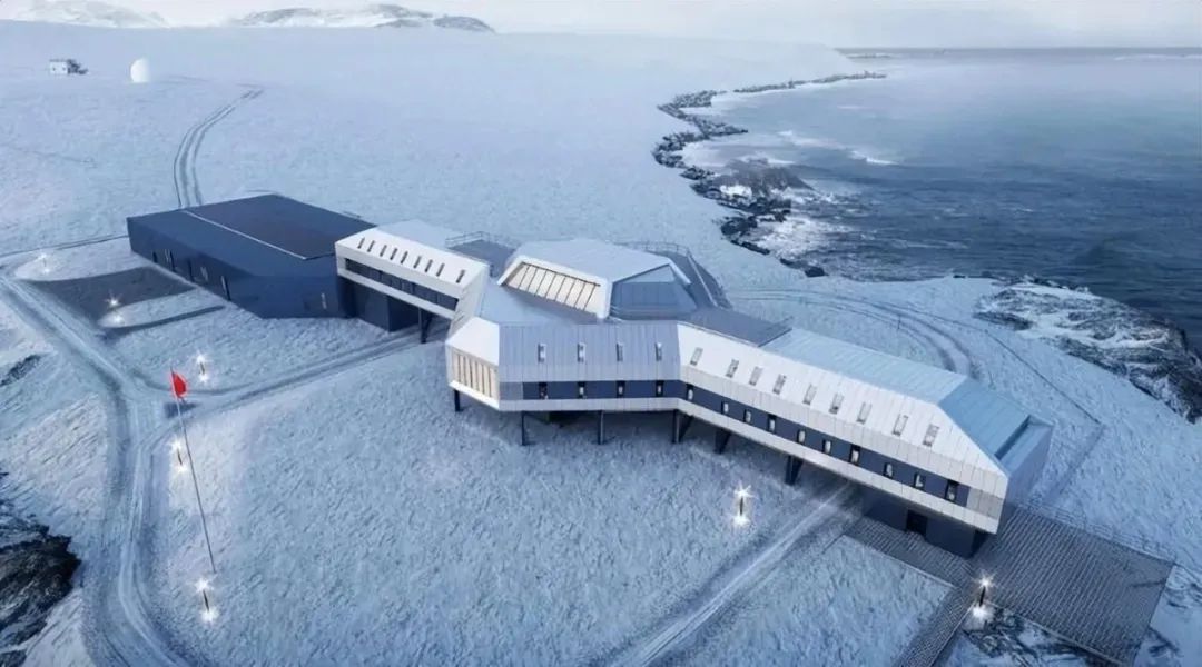 南极罗斯海新站(图中深蓝色区域使用的是宝钢黄石生产的316L不锈钢+氟碳涂层彩涂板)