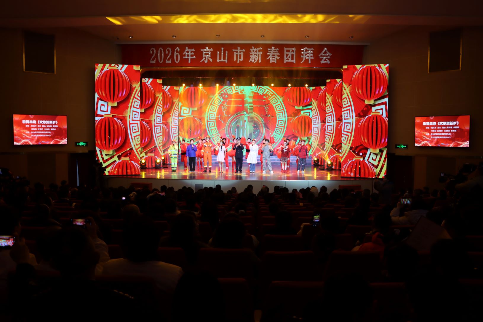 市人民法院院长,市人民检察院检察长,市退休领导干部代表,市直各单位主要负责同志,各镇(区、街道)党政主要负责同志,企业家代表,商会代表,优秀党务工作者、优秀党员代表,劳动模范代表,中国好人、道德模范、荆楚楷模代表,专业技术人才、返乡人员代表,京网合作商家、网旅管家、湖北省网球学校世杰班家长学生代表,以及部分群众和媒体记者代表等一同观看了“马跃新春 福满京山”2026年京山市新春团拜会文艺演出。(全媒体记者 魏梦婷)