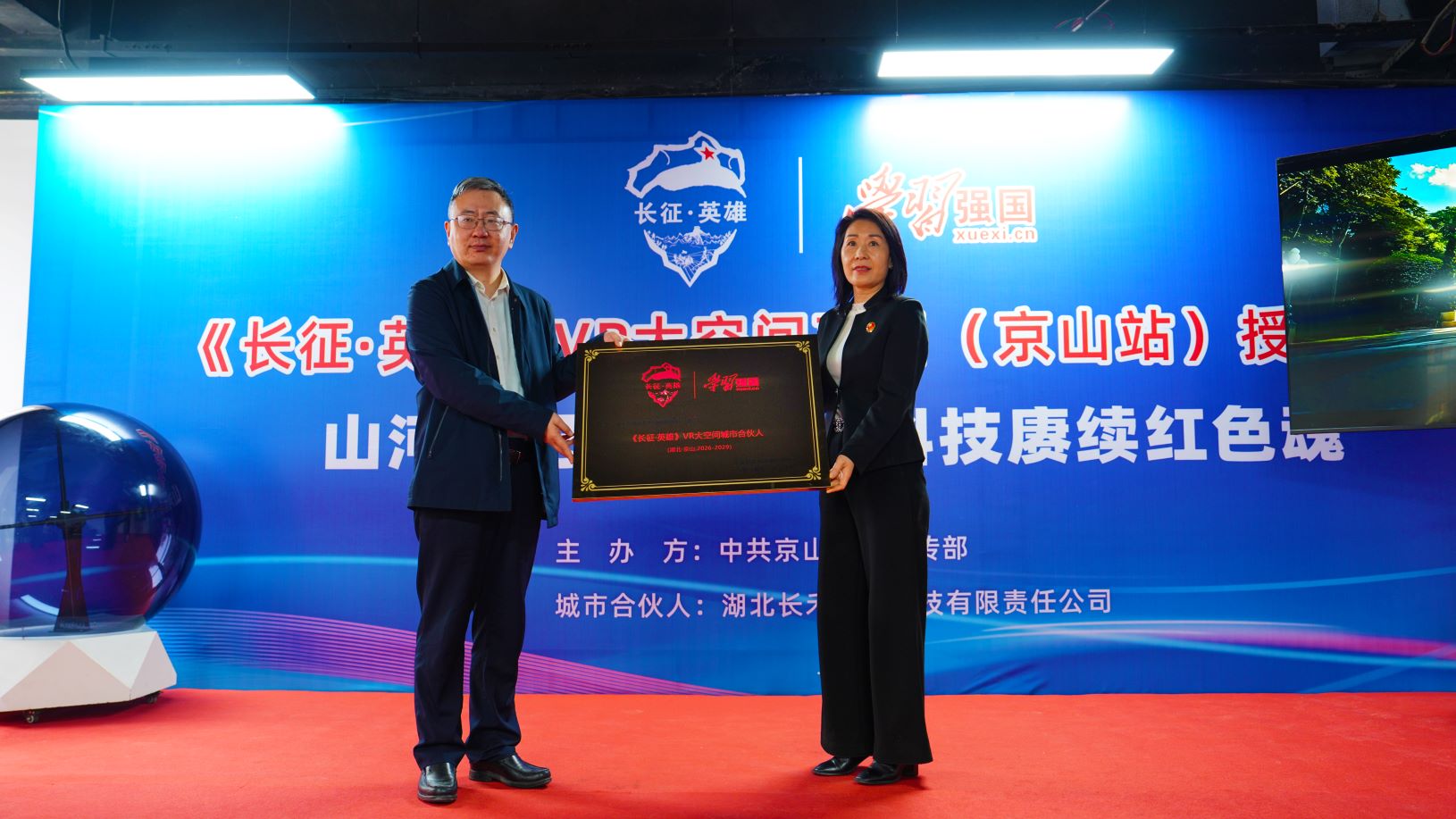 3月26日,“学习强国”《长征·英雄》VR大空间项目(京山站)授牌仪式在京山市举行。湖北省委讲师团副主任张鹏出席仪式并为“学习强国”《长征·英雄》VR大空间项目(京山站)授牌。“学习强国”《长征∙英雄》VR大空间相关负责人、张文秋亲属代表以及社会各界专家学者出席仪式。京山市委书记何洪涛致欢迎辞,市政协主席易红梅主持仪式。