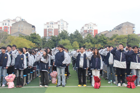 在庄严宣誓环节,全体高三学子面向国旗,高举右拳庄严宣誓,展现出五中学子不负韶华、决胜高考的坚定决心。