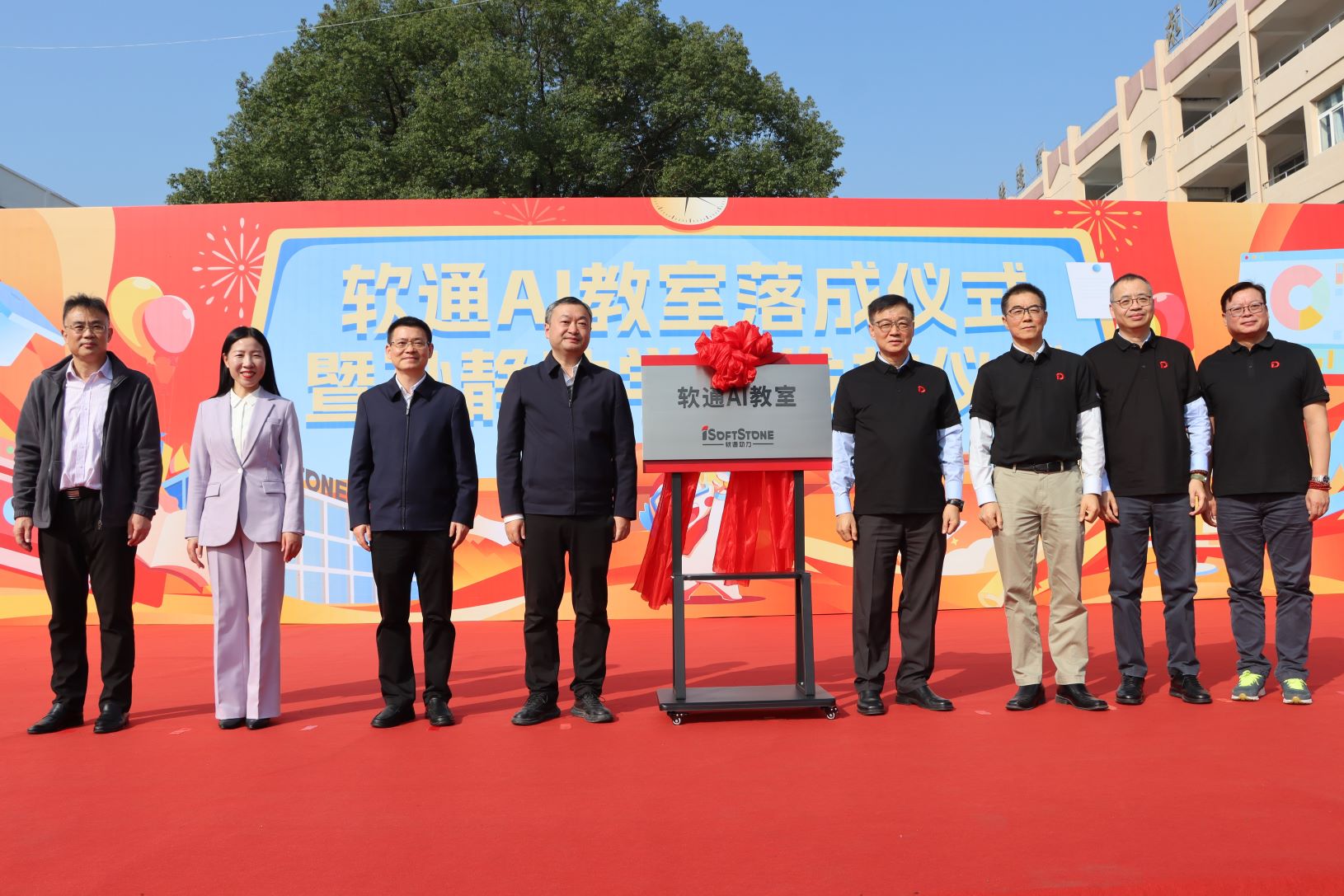11月14日,软通 AI 教室落成仪式暨孙静助学金发放仪式在坪坝镇初级中学举行。软通动力集团董事长兼首席执行官刘天文,市委副书记、市长鲁雷,市人大常委会主任杨宜云,市政协主席易红梅,市委常委、市委办公室主任王汉丰等领导和嘉宾出席仪式并共同为软通AI 教室揭幕。