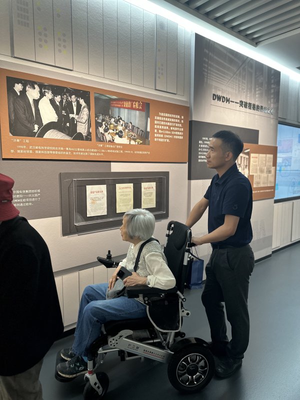 中国光纤之父、赵梓森院士的夫人范幼英在“济青工程”展区久久停驻。长江日报记者冯雪 摄