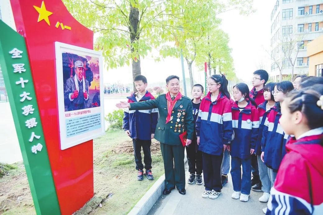 黄冈老兵宣讲团成员游小亮进校园开展国防教育。 通讯员 郭峰 摄