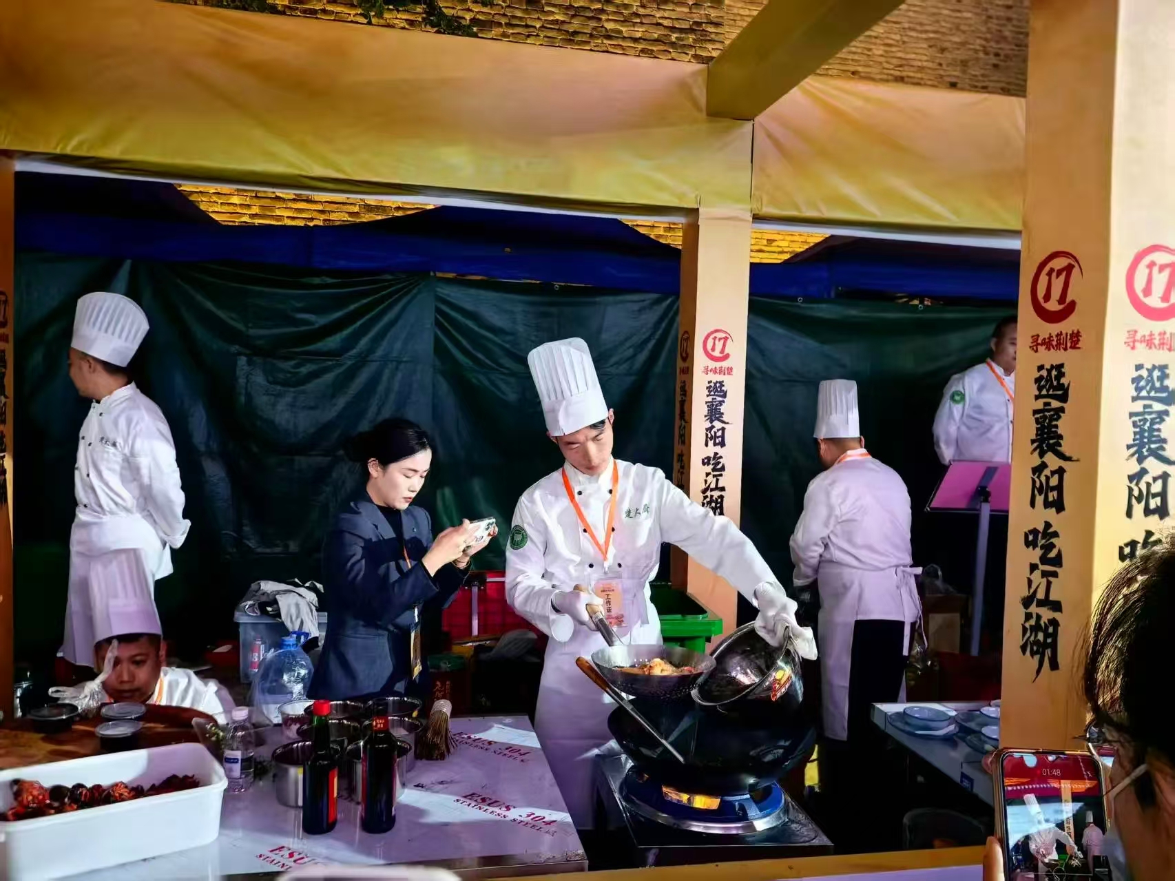 11月15日,“知音湖北 超级文旅日”·17寻味荆楚之逛襄阳吃江湖活动在北街火热开启。这是一场以美食为名的文旅盛会。襄厨争霸赛汇聚本地星级酒店大厨、特色餐馆掌勺,大家纷纷拿出各自的拿手菜,一展厨艺。