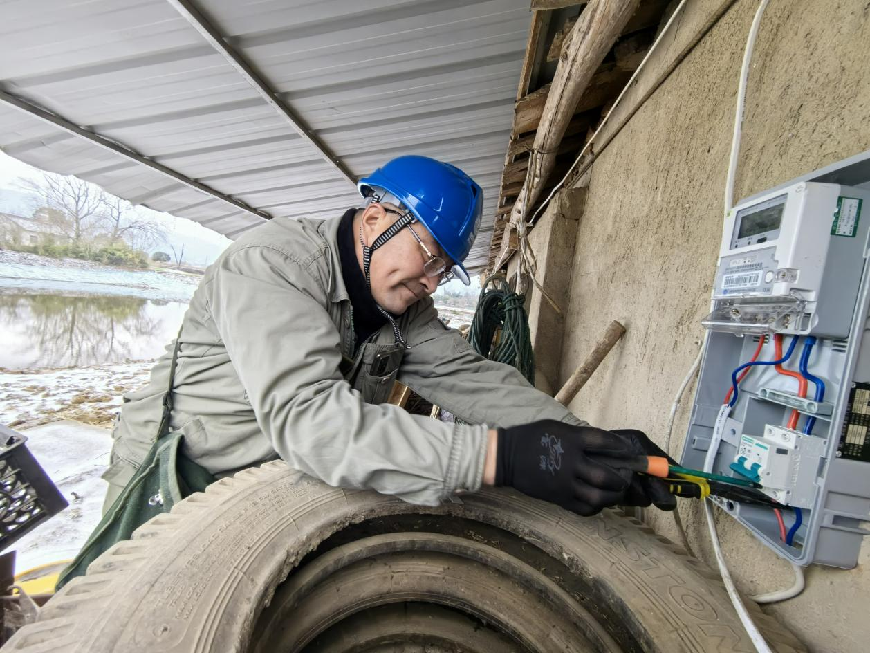 2月2日,京山公司新市供电所组织抢修人员前往鄢郝一组台区处理用户用户家中无电故障。