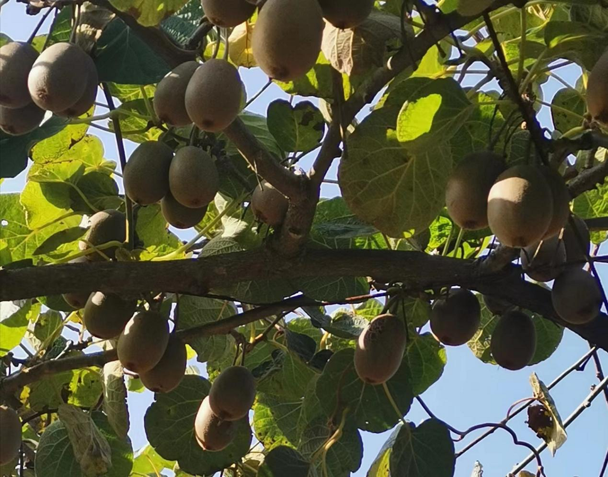 10月19日,绿林镇全力村党支部委员许贤光正在村里的黄桃基地里,通过“书香湖北”APP搜索黄桃园秋冬...