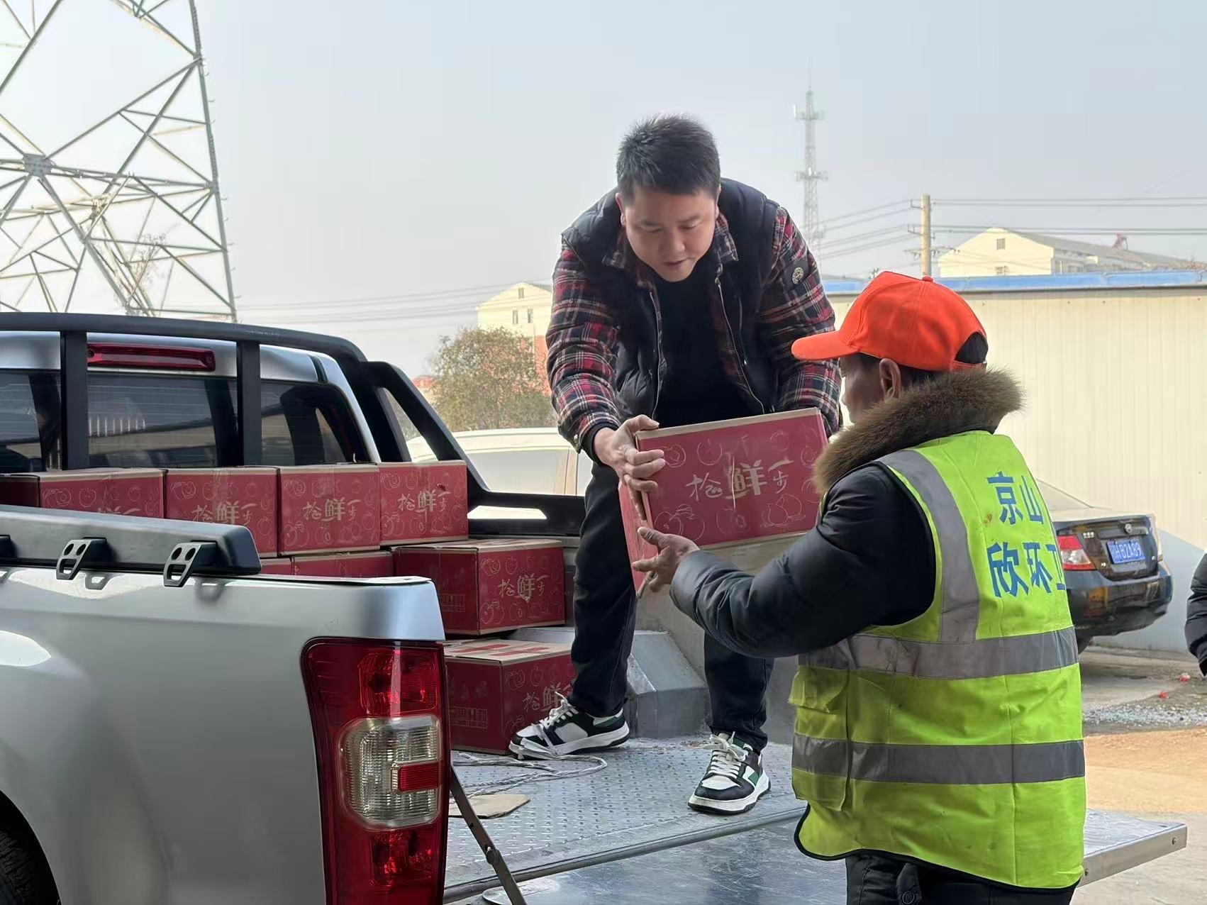 2月12日上午,湖北京兰水泥有限公司满载慰问物资来到欣环卫钱场保洁站,向坚守一线岗位的环卫工作人员送上节日慰问和新春祝福。