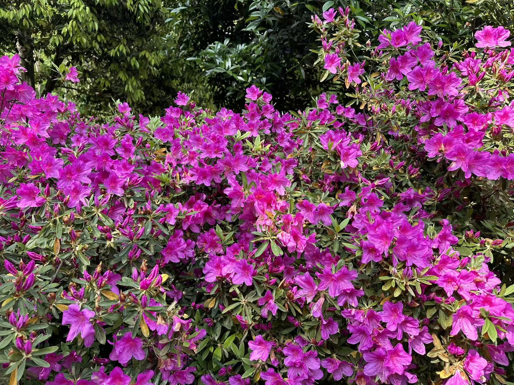 走进太子山王莽洞风景区,葱郁林木间,一簇簇、一团团毛鹃缀满枝头。粉紫娇艳的花瓣层层舒展,在阳光映衬下熠熠生辉,微风拂过,花枝轻颤,暗香浮动,与青翠竹林、参天林木相映成趣,勾勒出“山花烂漫入画来”的绝美景致。